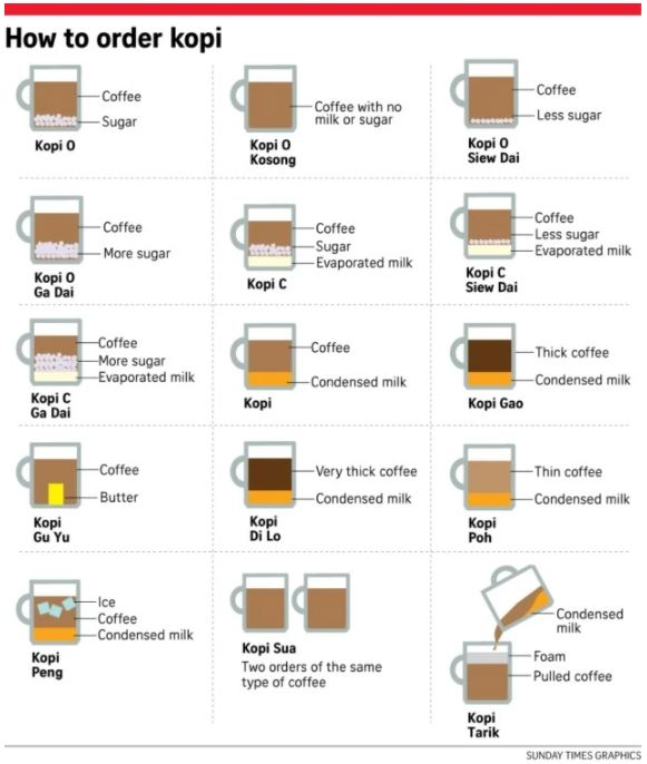 To order a coffee or tea in Singapore, you need to learn some of the keywords. The below screenshot shows how to order coffee.