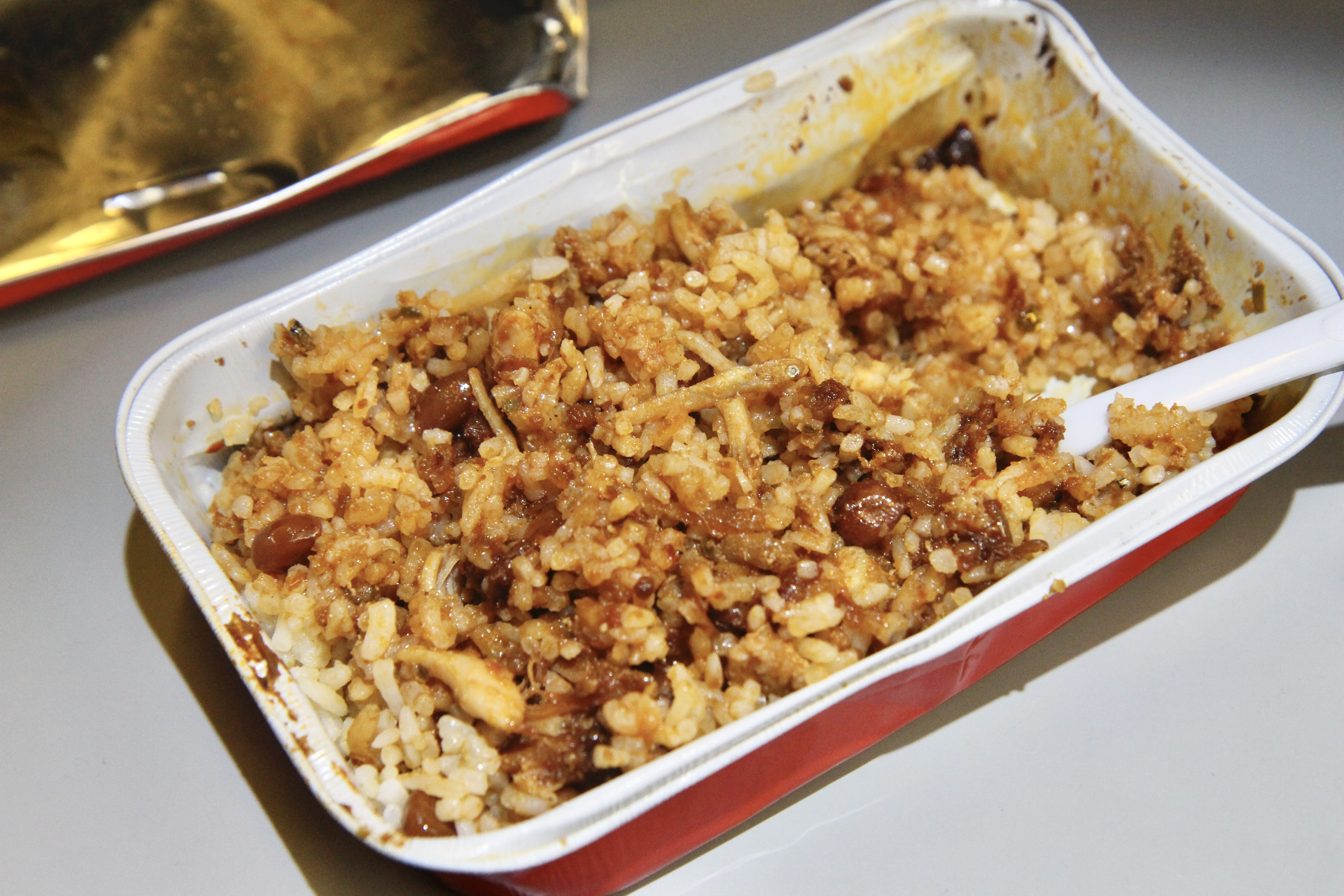 The nasi lemak wasn't too bad. In addition to the basics, the dish also came with some kind of curried chicken. Personally, I find that anything with curry tastes pretty good, even for in-flight meals. Whether proper or not, I mixed all the components together, kinda like bibimbap. A bit salty, a bit spicy. Pops of peanuts or dried anchovies in every other bite. I enjoyed it.