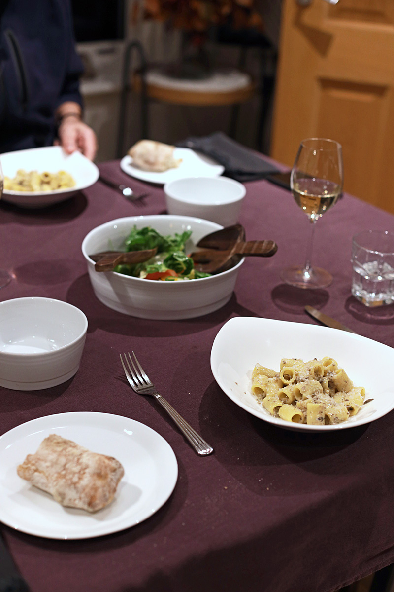 今日の夕食は、10月にお友達のズームのよるお料理教室(わたしは録画ビデオを拝見しました)で習ったマッシュルームのクリームパスタ。習ったときはロングパスタで習いましたが、今日は夫が好むショートパスタで。前回作った時にたくさん作って冷凍していたのでそれを使い、ニンニクを炒めてソースを加えて少しミルクとクリームを足して、パスタと和えただけ。ロングパスタの方がやはりソースを吸って美味しい気がしましたが、これはこれでオーケーでした。