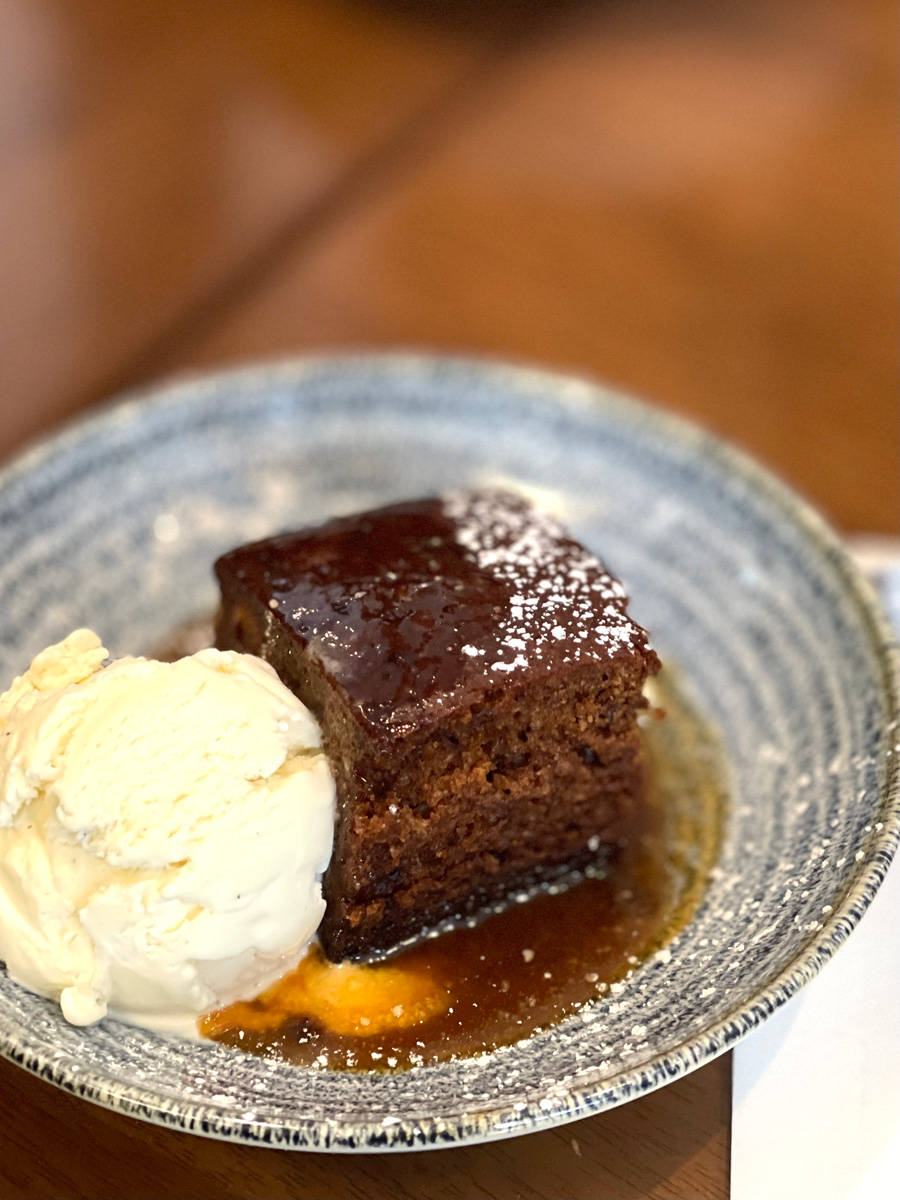 夫とわたしは、デザートにスティッキー・トフィー・プディングをシェアー、軽めで甘過ぎず美味しかったです。時々大量の甘い甘いソースがかかっていることがありますが、ここは適量でした。