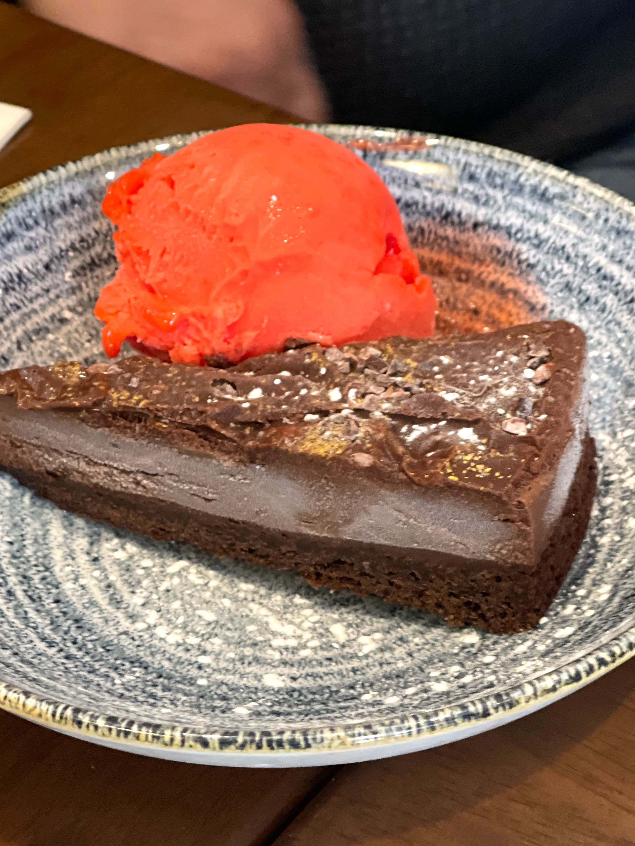 Our friends had, I think, Apricot Torte, which came with blood orange sorbet.