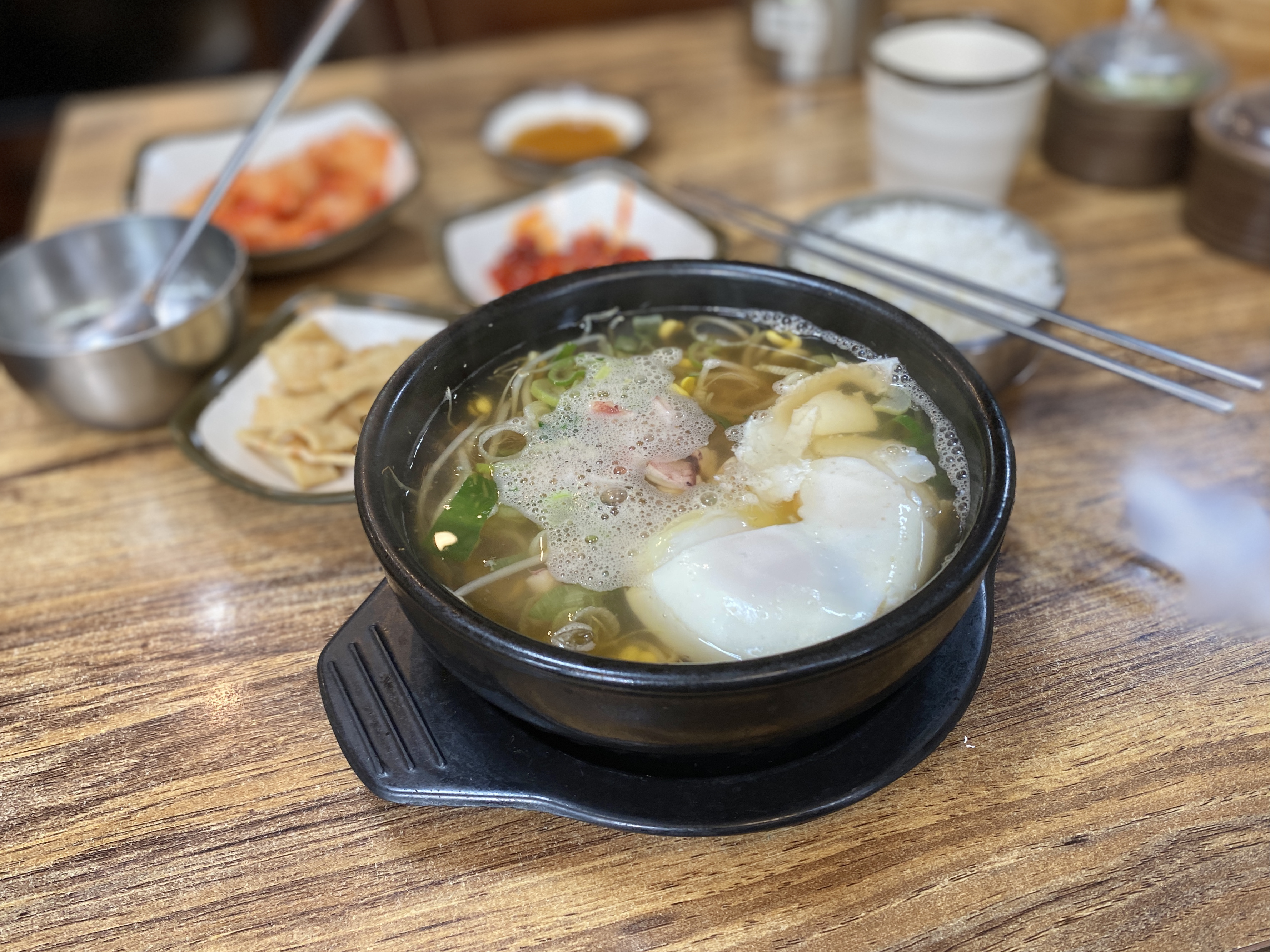Apparently, kongnamul gukbab is an established dish, originating from Jeonju, and for some reason a popular dish in Seongsu-dong, judging by the presence of at least 3 restaurants in the immediate vicinity specializing in it (see for example 12.025 Kongnamul Gukbab).