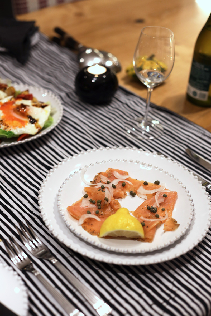 夫は、スモークサーモンを前菜に。