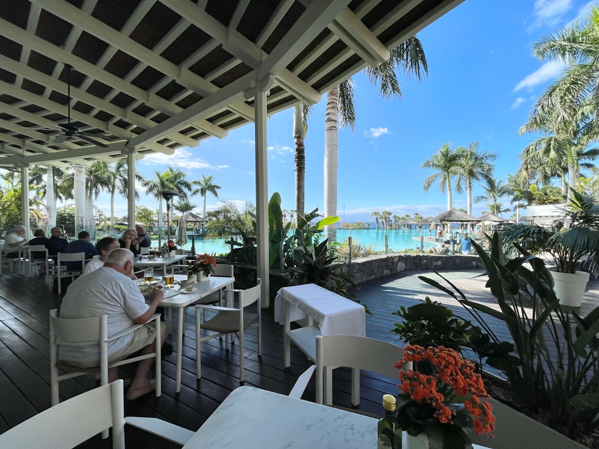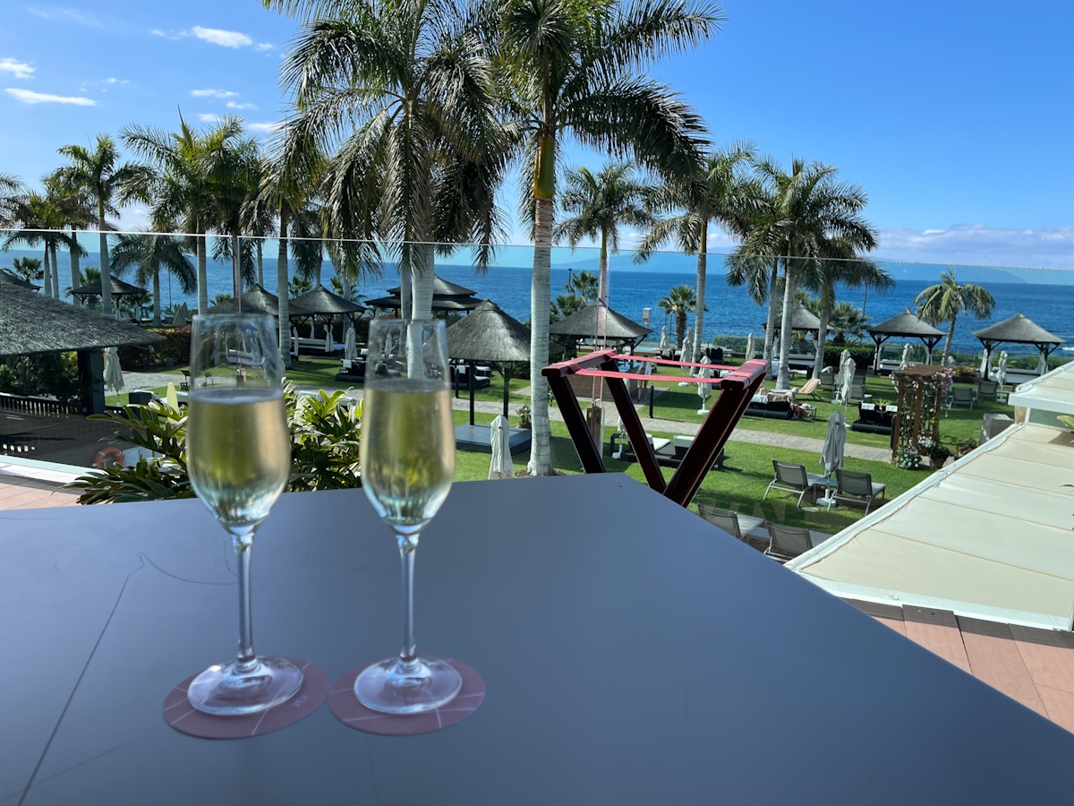 As for the hotel, my husband did some research and thought this hotel Gran Melisa Palacio de Isora looked good and we booked a room in their "Red Level", where no children under 16 are allowed in. They have their own gate, and when you get in the gate it's a lounge of Red Level, where you can check in with a glass of Cava on the terrace.