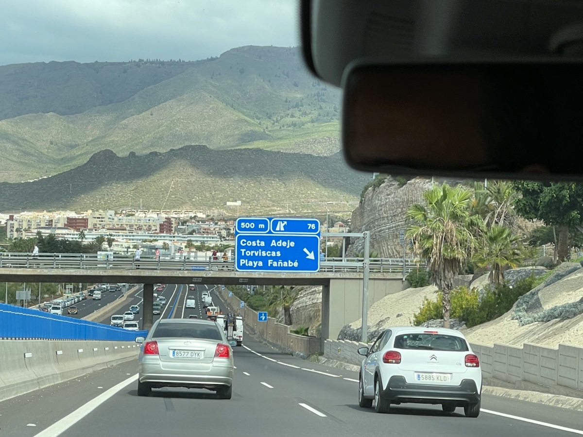 Luckily the flight from Gatwick to Tenerife South was shorter than scheduled by 30 minutes or so, it was 3 hours and 40 mminutes. We had booked a taxi, which took us to the hotel, it took about 30 mminutes. The scenery on the way reminded me of California.