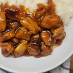Bourbon chicken is not necessarily the most common item found on the menu at a Chinese restaurant, as it is not strictly Chinese food, but rather a western modernization of the sauce making found in Chinese cuisine. This recipe for Bourbon Chicken & Rice has a smoky velvety sauce with just a hint of heat. And since it is another 30 minute creation, you are going to want to make it again again.  Bourbon Chicken & Rice As per my usual, I have listed to cook the rice with broth instead of water. This is a personal preference of my family that just adds the extra layer of flavor. If you prefer to make rice with water that is totally up to you. For the bourbon, I prefer Jim Beam. It has a great flavor and it is not a huge expense, as well as pretty easy to find. If you have another bourbon on hand, that would work too, just be sure it is not a flavored, peated or rye bourbon.  Bourbon Chicken & Rice If you wanted to mix in some veggies with this I would add them in at the same time as the sauce mixture. I would suggest zucchini, broccoli, carrots, bell peppers, and/or white. onions. Really anything that will hold its texture during the cook time. You don't want anything too delicate like green onions, or bean sprouts - they will be mush by the time the chicken is cooked through. You could also just make some steamed veggies on the side and add them to your bowl.  Bourbon Chicken & Rice Now Let's Get Cookin'! Bourbon Chicken & Rice  Chicken in a delicious bourbon sauce over rice - quick, easy and so full of flavor. - 2 lb Chicken Thighs (boneless, skinless, cut into 1-inch chunks)