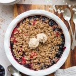 If you have some leftovers, this berry crisp will last for a few days in the fridge. Once it has cooled, transfer it to an air tight container, and when it comes time to eat the crisp again, warm it up in the oven at 325° for about 20 minutes.