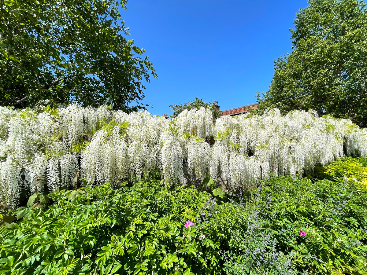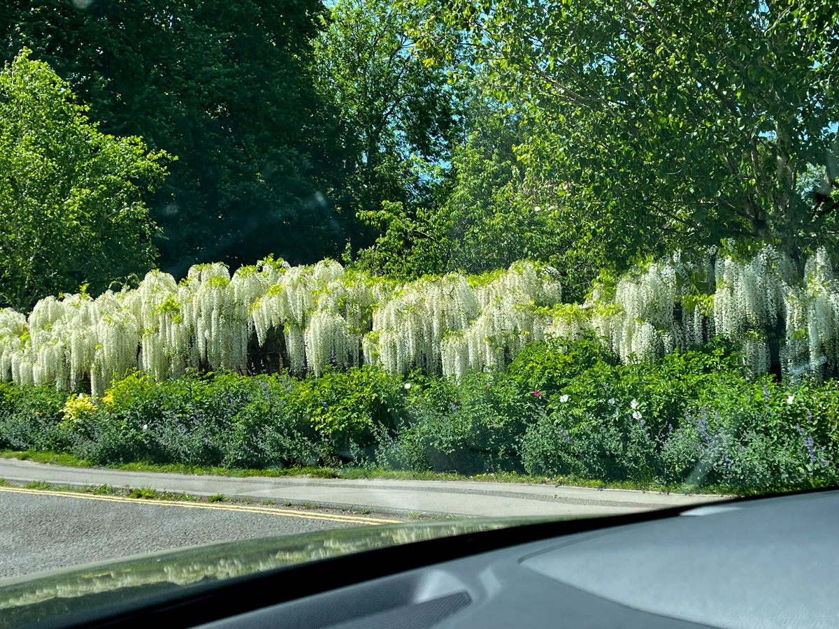 駐車したところからカテドラルまでは歩いて7、8分でした。駐車場の直ぐそばに見事な白い藤の花が咲いていて、とっても綺麗でした。写真ではあまり綺麗に撮れず、残念。