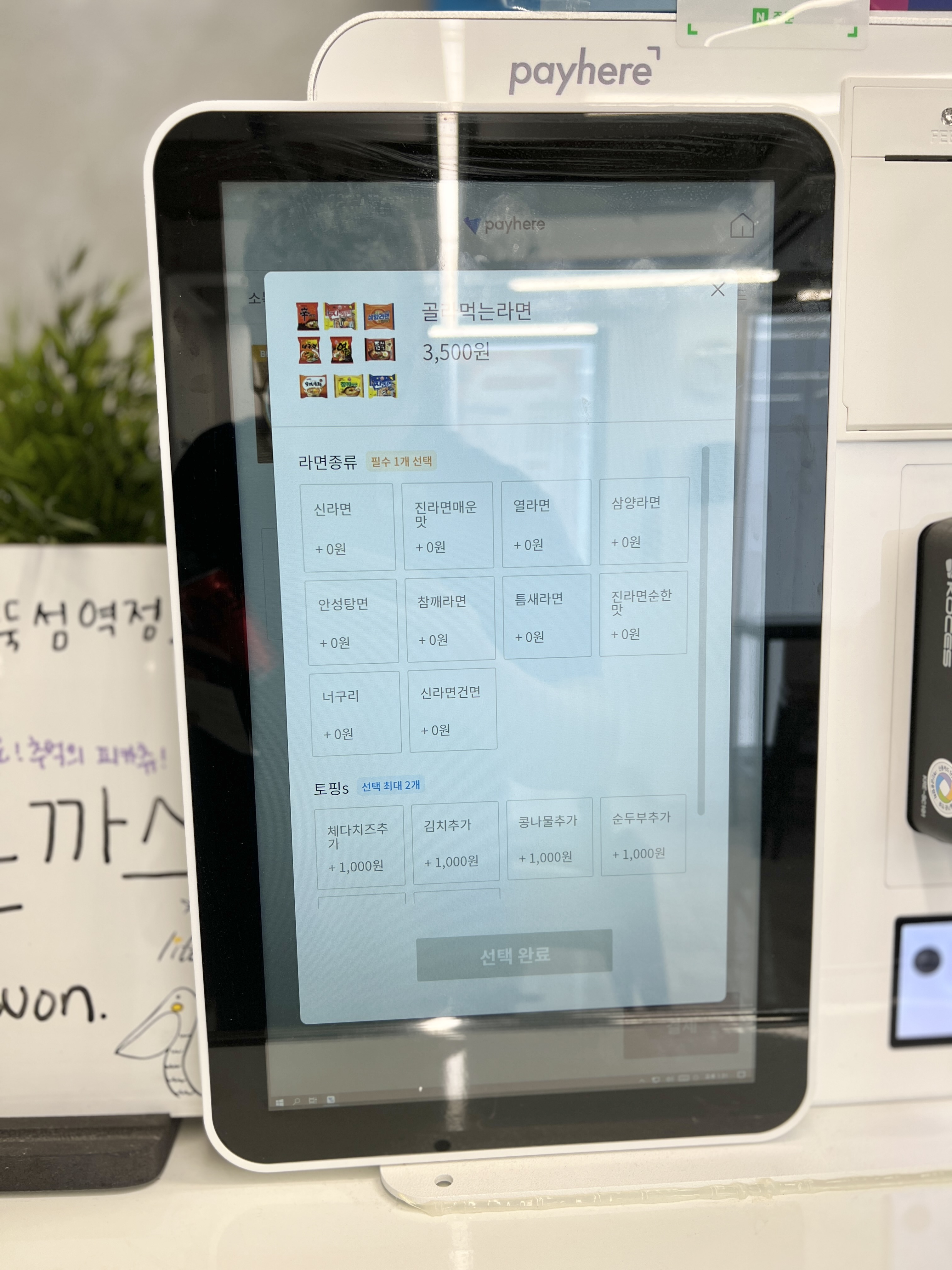 All ramyeon options = 3,500 won; toppings = 1,000-1,500 won each.