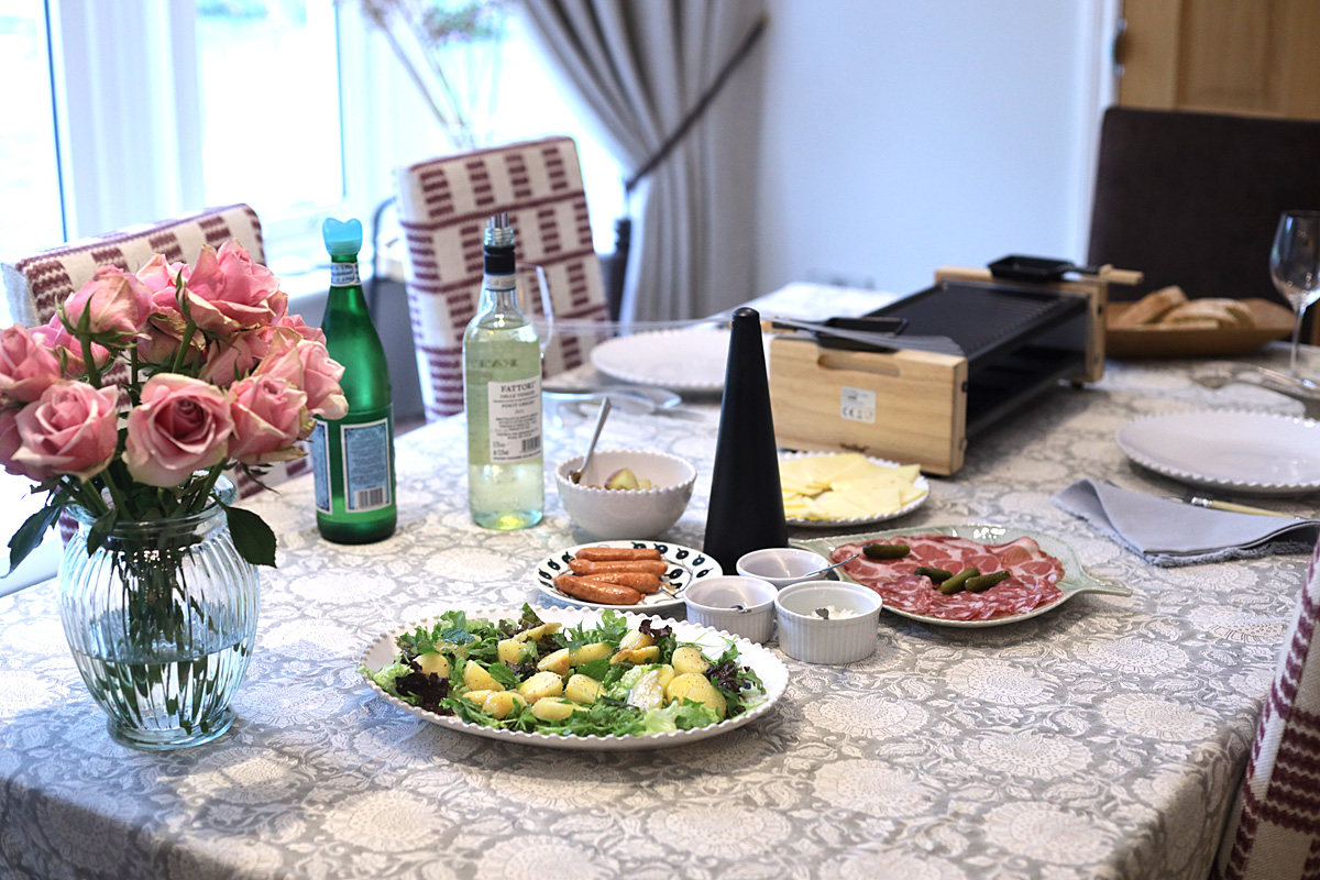 Today's dinner was Raclette. I thought it was cool enough for Raclette, but it wasn't, 20C is too warm for Raclette. The Raclette Machine gets very hot, we realised it really is a winter thing. We were able to enjoy it with a fan on, though.