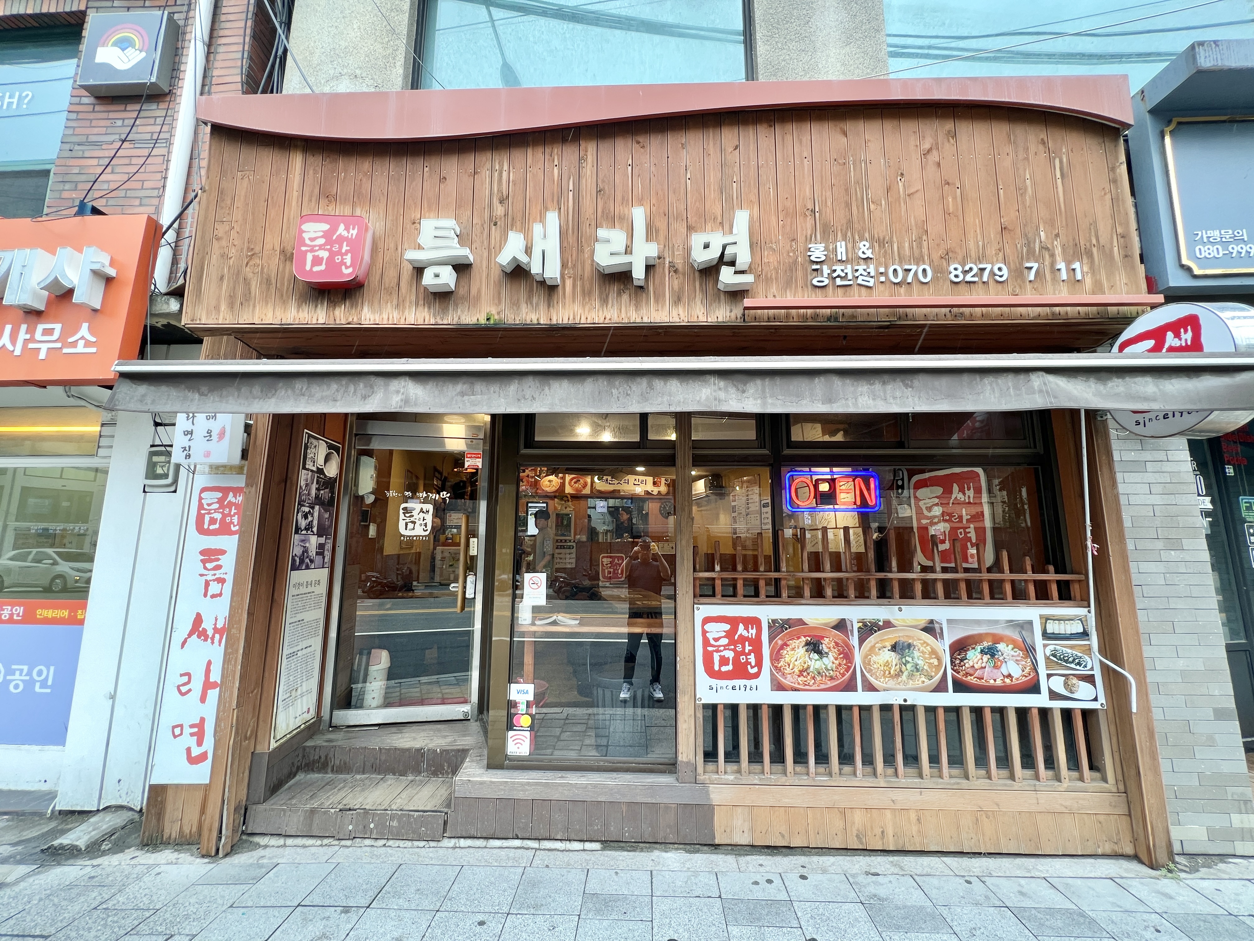 Teumsae Ramyeon (틈새라면) is a Korean restaurant chain. Specializes in Korean-style instant noodles, each bowl customizable according to the customer's preference. Initially made with various third party brands, now using the company's own brand, which is also sold in supermarkets. The original restaurant was founded in 1981. Currently 51 locations across the country.