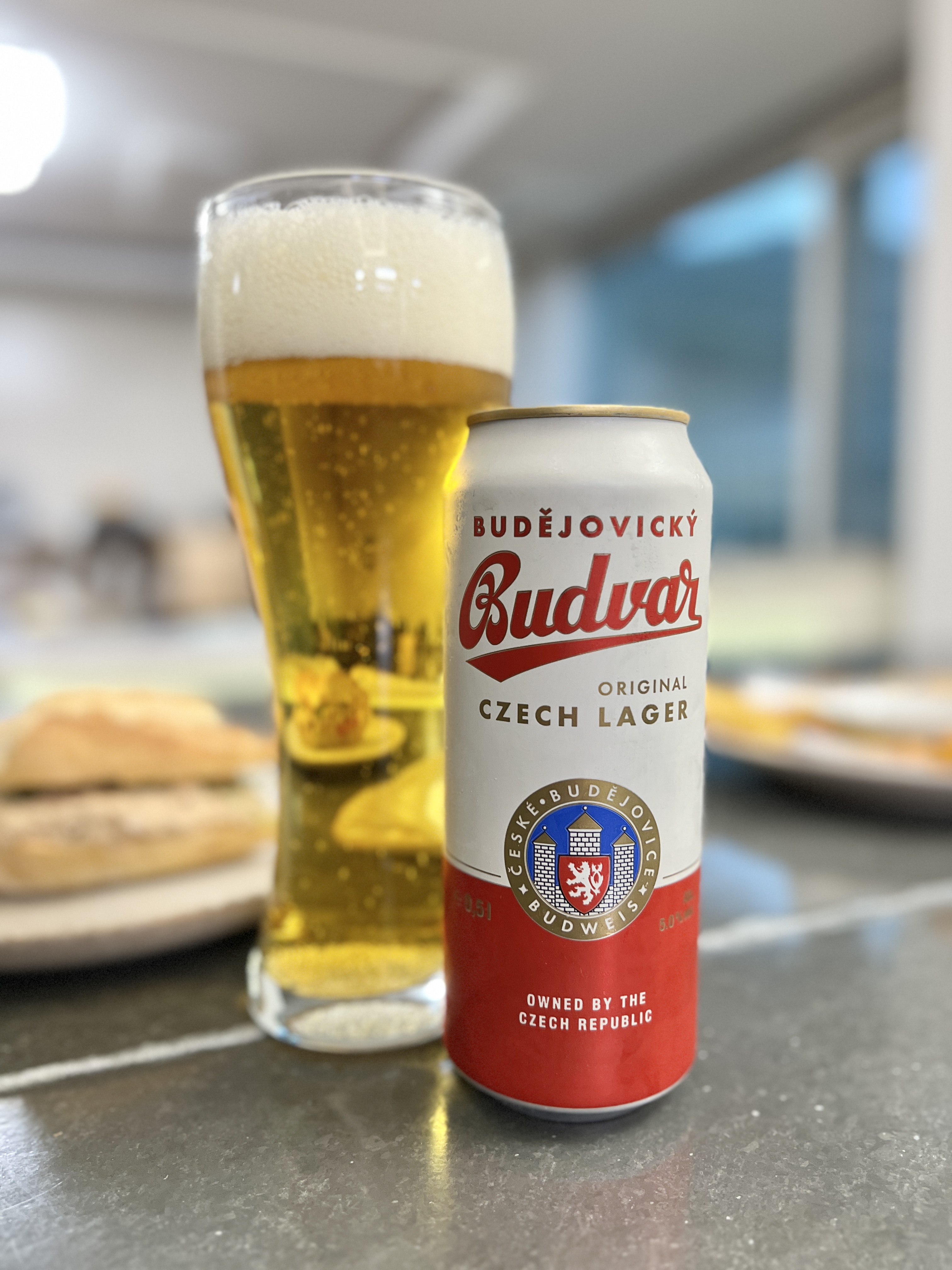 Budweiser Budvar Original Czech Lager - the "original" Budweiser, unrelated to Anheuser-Busch; the trademark dispute between the Czech and American companies explains why the Anheuser-Busch product is sold as "Bud" throughout most of the European Union, and why the Budweiser Budvar product is sold as "Czechvar" in the US and other markets where Anheuser-Busch owns the name.