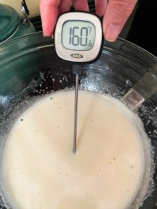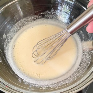 Whisk the ingredients together and continue whisking until the sugar has completely dissolved (about 5 minutes). Continue to whisk until it reaches a temperature of 160°F.