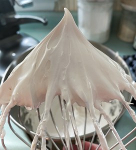Put the hot mixture into the bowl of a stand mixer and whip on high speed for about ten minutes (or until stiff peaks have formed).