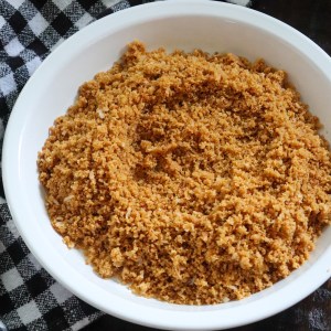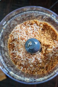 - Once the crumbs are made, combine with melted butter and toasted coconut.