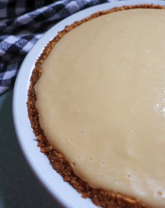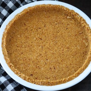 Place the crumb mixture in a 9 inch pie plate, and press up the sides and on the bottom using a small measuring cup or glass. Bake the crust for 10 minutes. After the crust has finished baking, remove from oven to cool while you're making the filling.