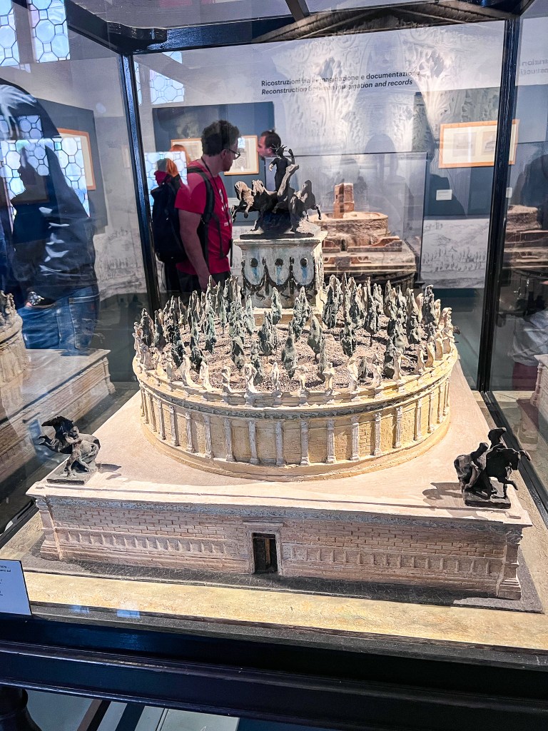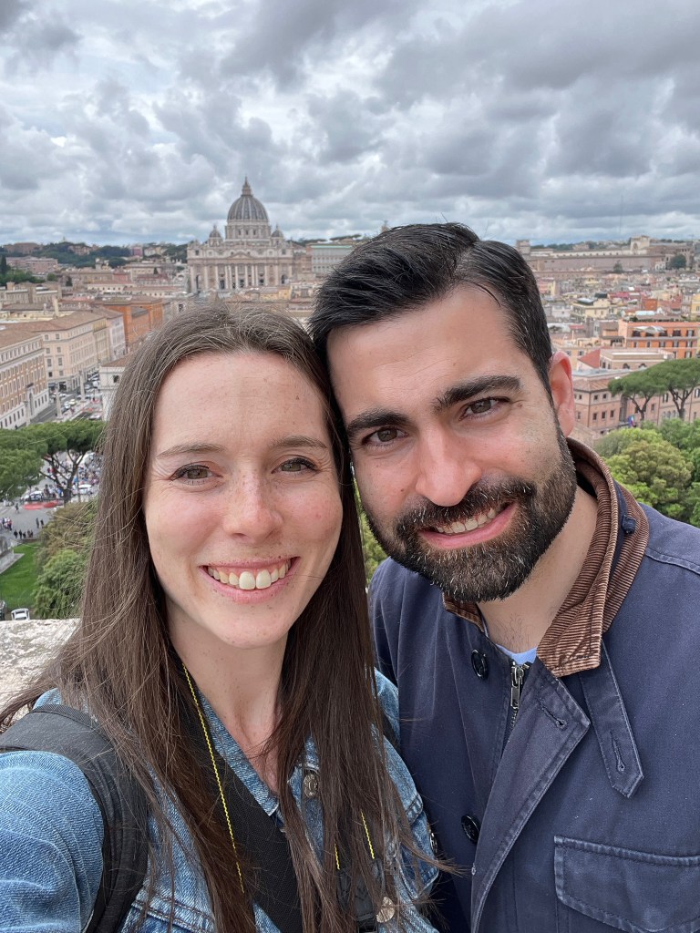 Hi friends, welcome back to my Italy series! After spending the morning taking pictures and trekking to Bonci Pizza, Jon and I headed to Castel Sant' Angelo on the banks of the Tiber River. This structure was built as a tomb for Emperor Hadrian in AD 139 because at the time, tombs weren't allowed in Ancient Rome. The bridge in front was also commissioned by Emperor Hadrian so he could easily cross the river and visit the site. The emperor's ashes were buried here along with his family members and a few subsequent Emperors.