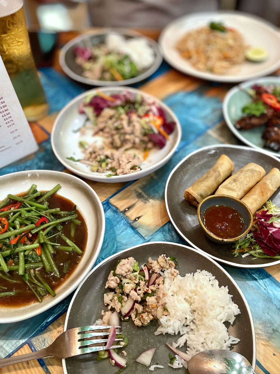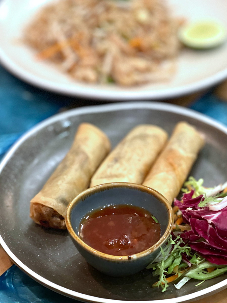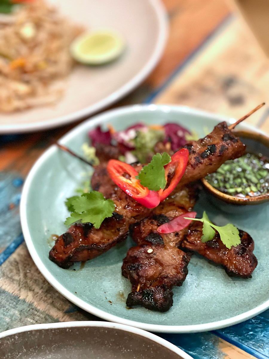 | Noodle Sep 9 | 暑いし、お菓子教室もあったし、メニューも思い浮かばないし、といういことで、今日はアランデルのタイ料理屋さん「Thai Time」に行きました。車を停めたところから歩いてほんの数分でしたが、歩いている時は夕方になると涼しくなるなと思いながら歩いていましたが到着した途端に暑くなってどっと汗が出ました。なんということでしょう、クーラーがない。前に暑い時に行ったときは、あったはず。故障中だそうです、有り勝ち。しばらく座って落ち着いたら、それほど暑くなかったです。 It's so hot, I took the French Baking Class this afternoon, I couldn't come up with a menu for dinner - so we decided to go out for dinner. We went to Thai Time in Arundel. It was only a few minutes' walk from where we parked our car and I was thinking when we were walking that it wasn't too hot once the sun goes but as soon as we stopped walking I got all sweaty! I was sure they had air-con in the restaurant but they didn't today - apparently it's broken!! Once I cooled down it was OK, though. オーダーは、いつもほとんど変わりませんが、1つだけ、良くオーダーするチキン・サテーをオーダーせずにポークのサテー(ムー・ピン)をオーダーしました。他は、野菜の揚げ春巻き、ラーブムー(豚ミンチのサラダ)、パッタイ、空芯菜の炒め物、ライス。どれも美味しくいいただきました。生ビール1パインとと半パインとをいただいて、お会計はチップを入れて70ポンド(12900円)。 We tend to order the same things every time but we did order something we hadn't before, we ordered Moo Ping (pork satay) instead of our usual Chicken Satay. Other things we ordered are Vegetable Spring Rolls, Mince Pork Salad, Pat Thai, Stir-fried Morning Glory and Jasmine Rice - we enjoyed all. I think we enjoyed it more today because the weather made it seem more appropriate to have Thai food. We had one and a half pints of draft beer and the total bill including our tip was £70.      | | | |