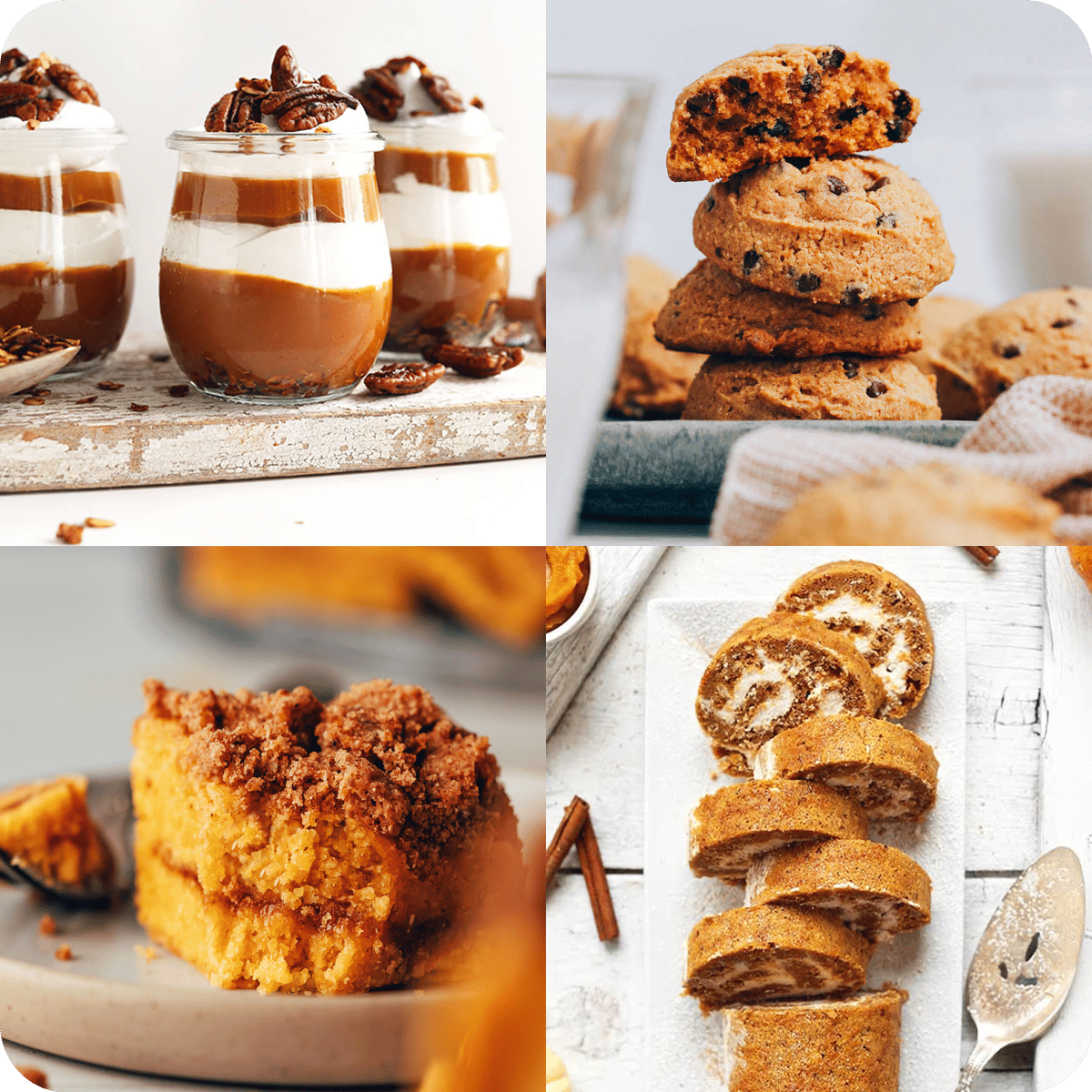 EASY, amazing pumpkin desserts to enjoy this season! Pumpkin pie, bread, cookies & more. All vegan and mostly gluten-free!