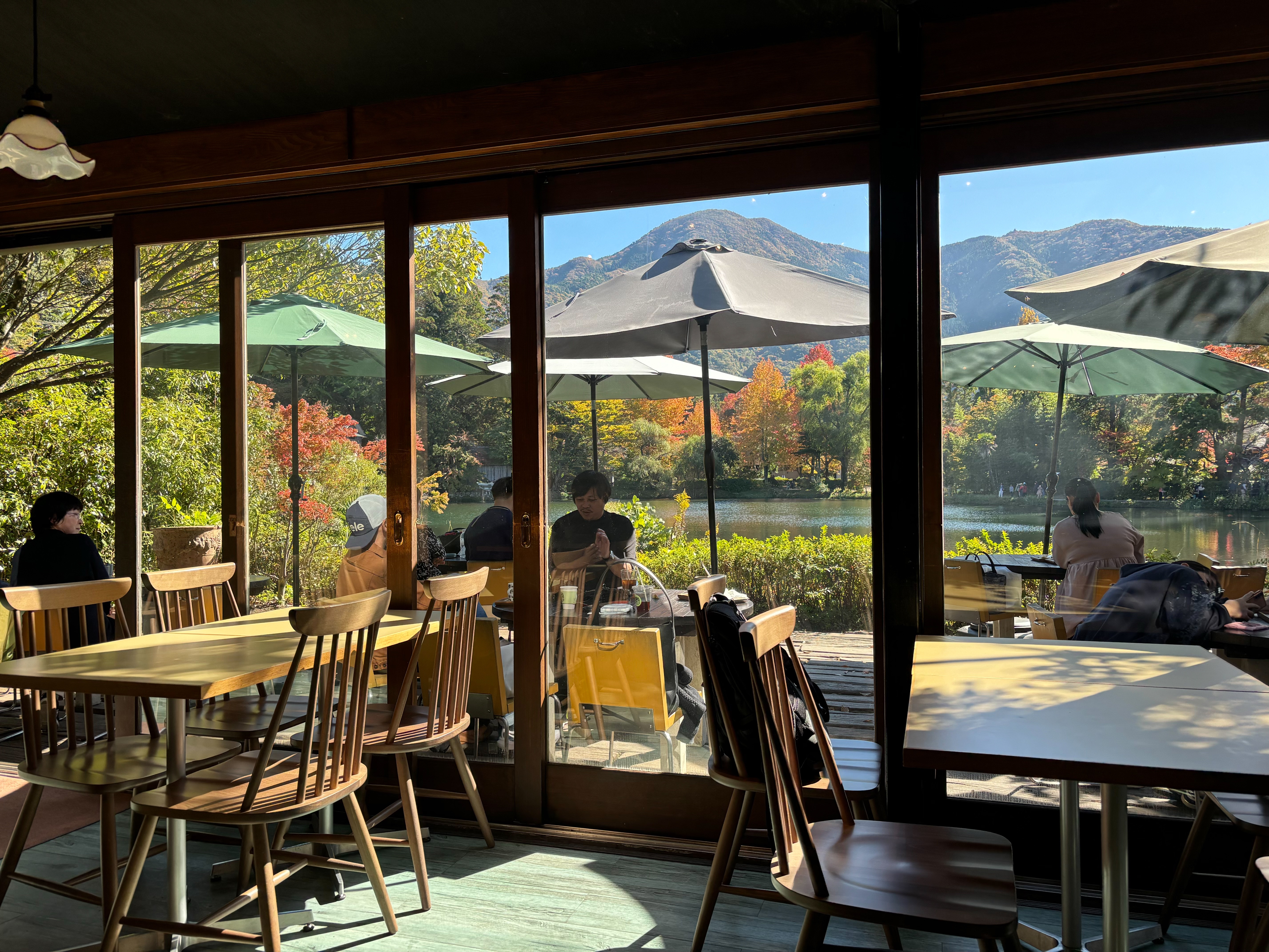 しばらくこのカフェでゆっくりとしてから、金鱗湖をぐるりとお散歩しました。その写真は、次のポストで。