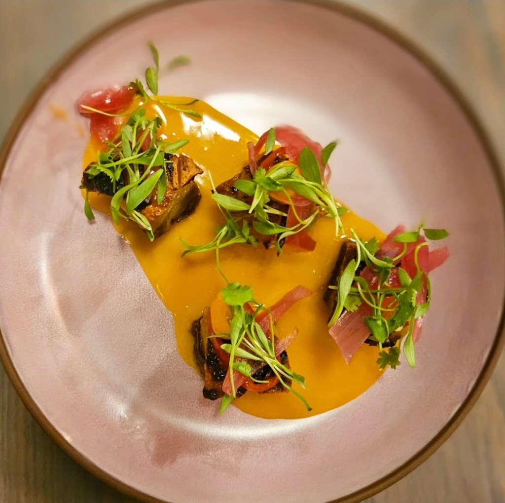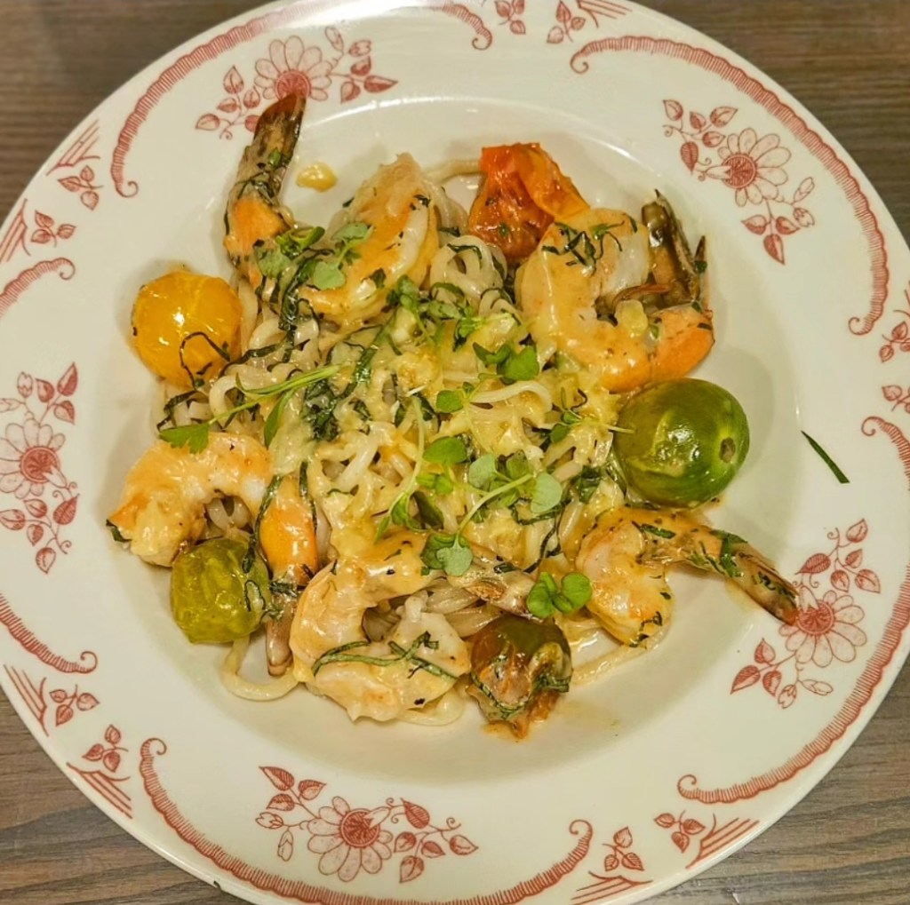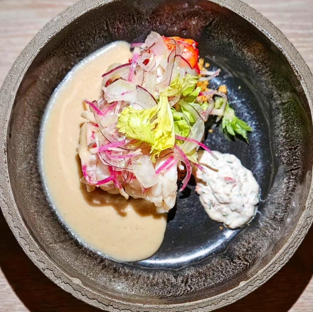 After spending a day at Universal Studios, we were extra hungry, so we spoiled ourselves with an extra appetizer. Our first choice were the Ham & Cheese Croquettes, a play on the traditionally Spanish delicacy, served with sweet plantains, cheese, and a sunflower romanesco. Very different and delicious. Then came the Oxtail & Fois Gras Empanada, served with a mango chutney, which was to die for. So yummy. Then I saw Pork Belly on the menu, and if you know me, then you know how much I love pork belly. This one was accompanied by a kumquat and sour orange dressing. It was nice and crispy on top, the dressing a perfect addition. Sasha chose the Shrimp Bucatini with Canaveral Shrimp, Ouzo cream and tomatoes. The seasoning was perfect, the pasta al dente, it was unique and delicious. I ordered the Florida Seafood Moqueca, not knowing what it actually was (other than that it was a Brazilian dish). I was served with an assortment of fish and seafood, accompanied by a serving of coconut rice. It was without question the best thing I ate in 2023, and that means a lot, being that I'm always out to dine. Absolutely amazing.