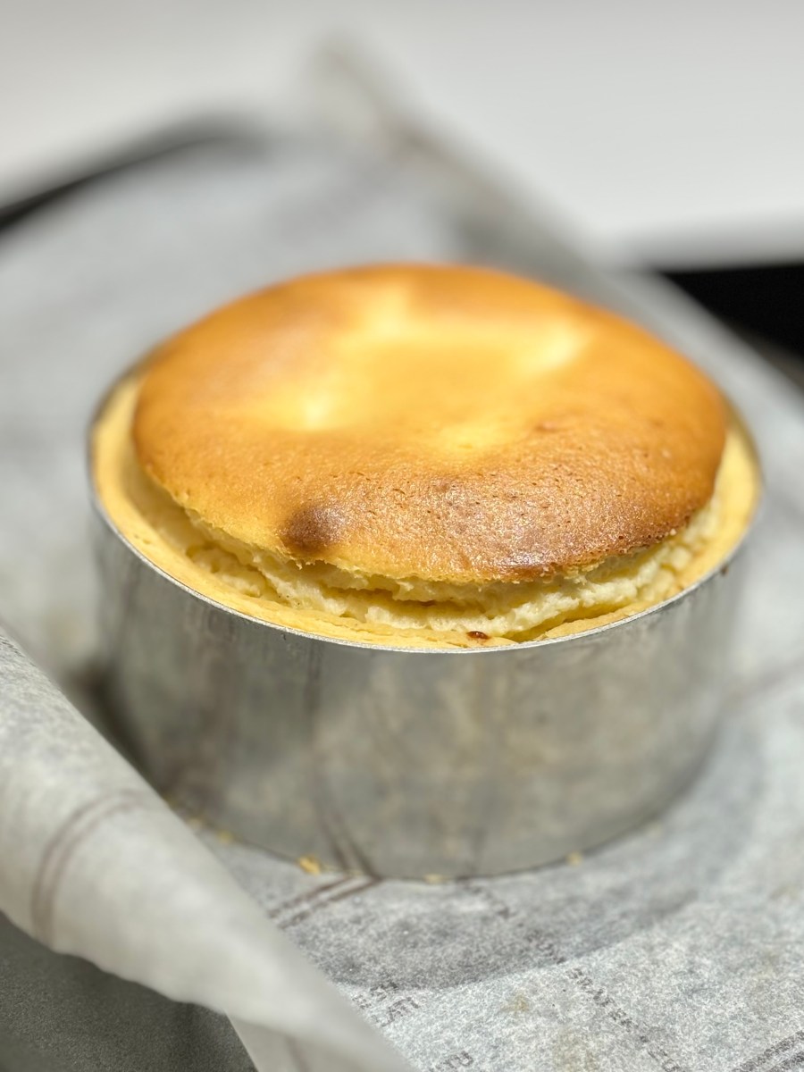 キャラメライズしたバナナが入っているチーズケーキ。バナナが入っているって、ちょっと珍しくないですか?これはオーブンから出したばかりでぷっくりと膨らんでいますが、冷めるにつれて凹んで行きます。今はまだちょうど平行なくらいですが、これから真ん中が凹むまで待ってから型から出して、明日いただく予定です。