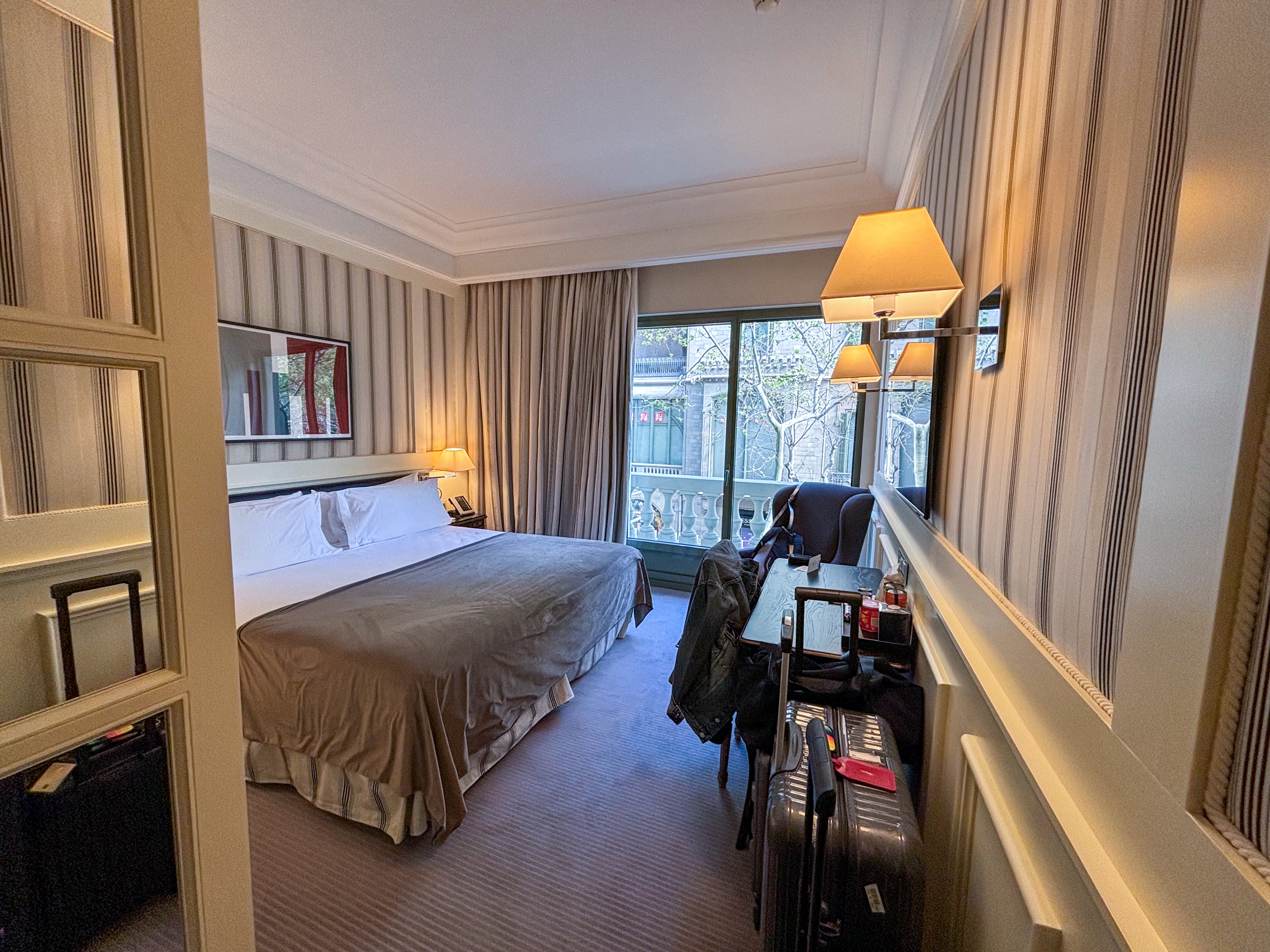 宿泊ホテルは、Hotel Majestic というホテルにしました。ヨーロッパは、ホテルのお部屋が狭くてびっくり。これでも、一番スタンダードなお部屋より1つ良いお部屋です。メインの観光ポイントまで歩ける距離ですし、ホテルの辺りには普通のチェーン店から高級店までたくさんお店があってショッピングにも良い立地です。今回は荷物に余裕がないのであまりショッピングは出来ないのが残念。
