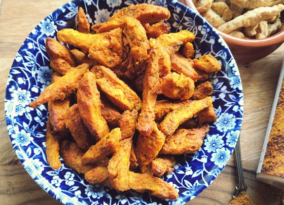 You can eat them while they're warm, or leave them to cool to room temperature. To store them, leave them to cool completely, then keep them in an airtight container Curry Soya Strips  Yield: Four servings Cook time: 55 minutes, including 30 minutes marinating You'll need: - 75g soya strips