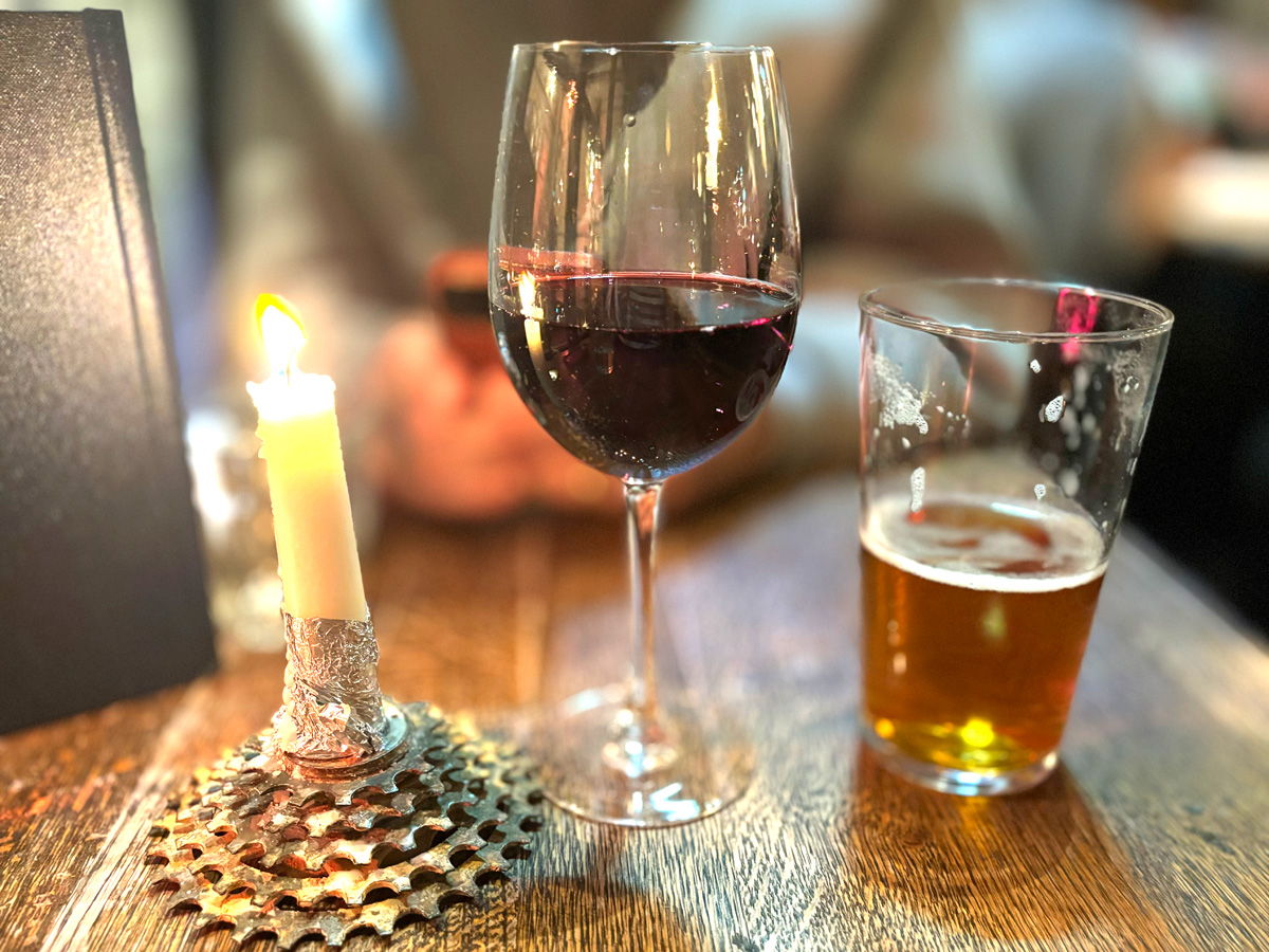 飲み物は、わたしは赤ワイン、夫はビター(ビール)。イギリスには数えきれない種類のビターがあって、これは初めて飲んだと言っていました。少し味見しましたが、フルーティーで美味しかったです。