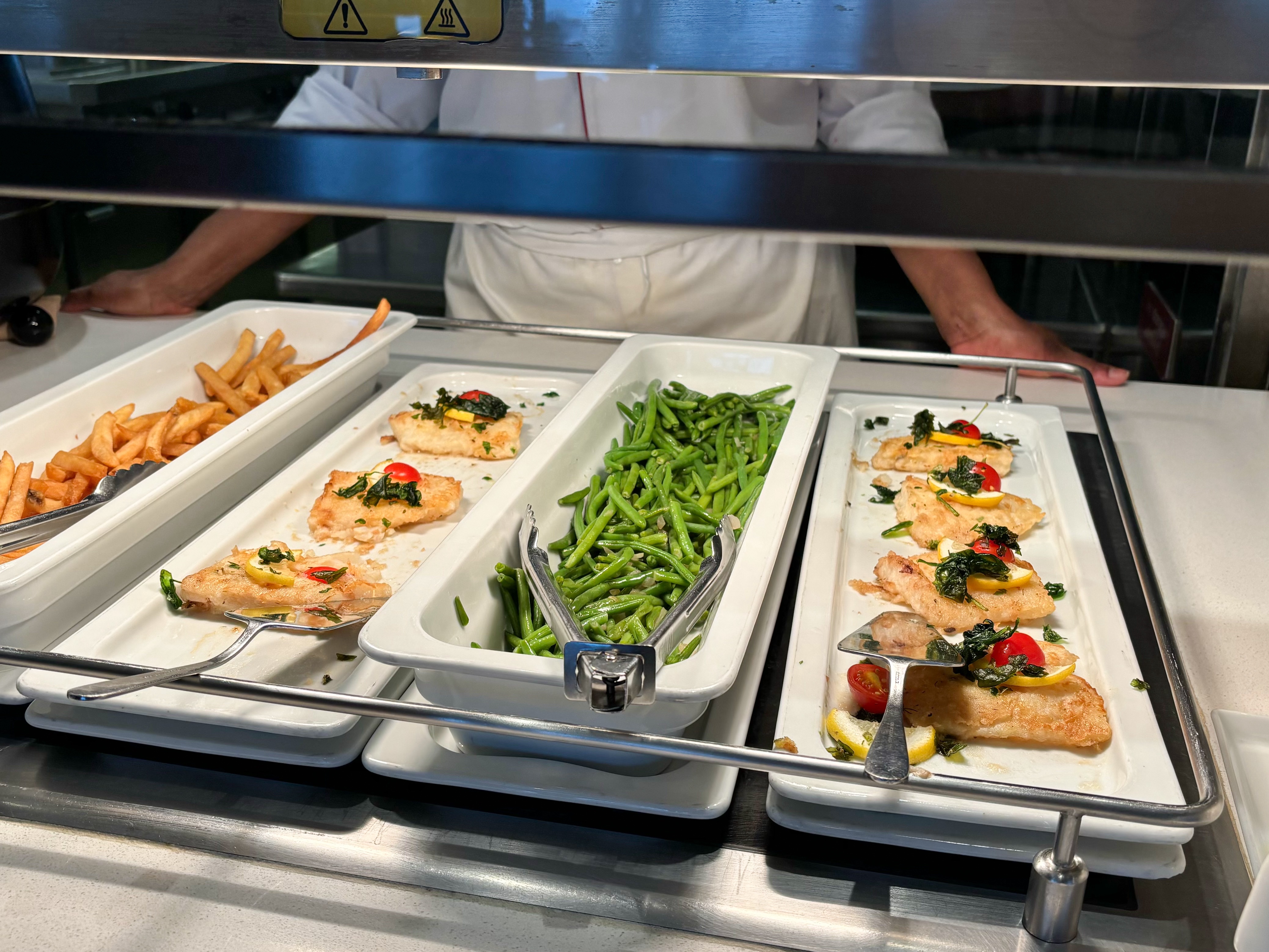 エクスカーションから戻ったのが丁度お昼頃だったので、荷物をお部屋に置いてからビュッフェのレストラン「ワールド・カフェ」で軽いランチをしました。思っていたよりも種類が少なかったのですが、多分、毎日のようにメニューが変わるのだと思います。全部は撮っていませんが、サラダバーとサラミやハム類、チーズのコーナー、バーガーのコーナー、メイン風のもの(今日はチキンシュニッツェルやお魚や何かローストしたお肉でした)と添え野菜のコーナー、ピッツァ、ケーキのコーナー、アイスクリームのコーナー、という感じ。