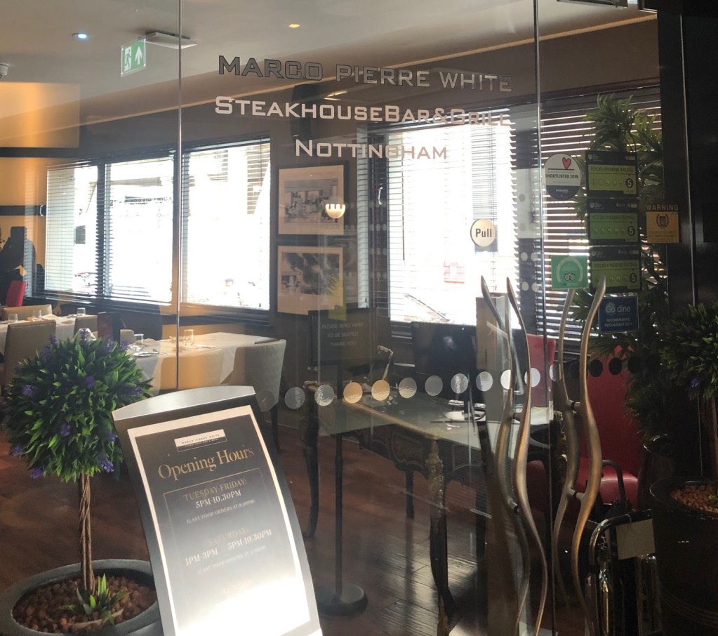 Marco Pierre White Steakhouse Bar & Grill is located inside the Alea Casino. There are two entrances to the building, one from Upper Parliament street, and one from Wollaton Street which is the main entrance really and matches the address for the restaurant.