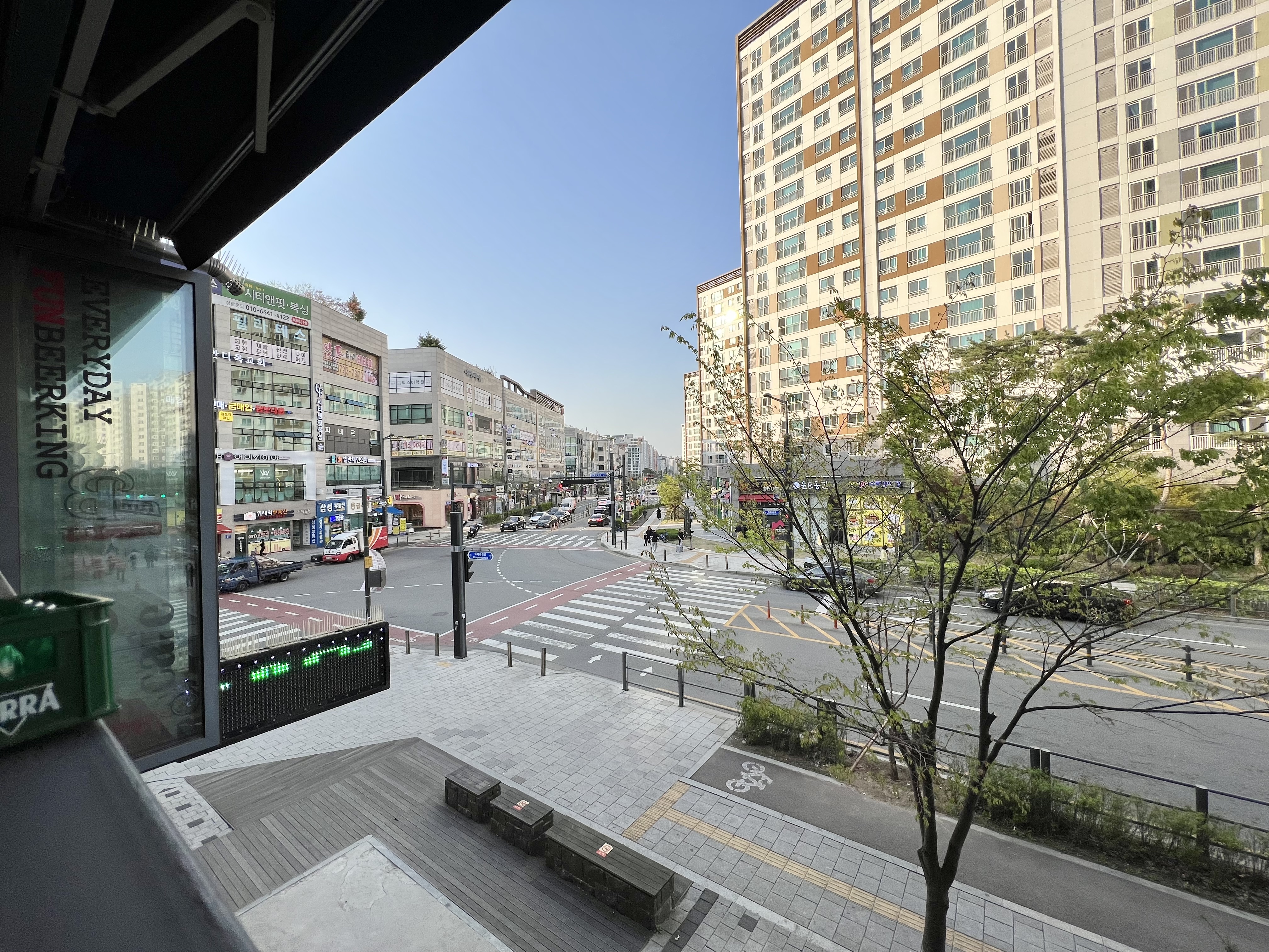 Nice view overlooking the intersection.