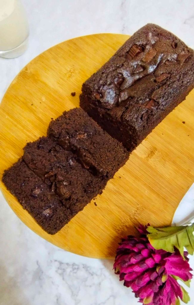 * CHOCOLATE- Uses dark chocolate chopped into chunks. Adding chocolate takes the simple cake to another level because of the chocolate chunks loaded in the batter and you can feel the chocolatey taste in every bite of the cake.