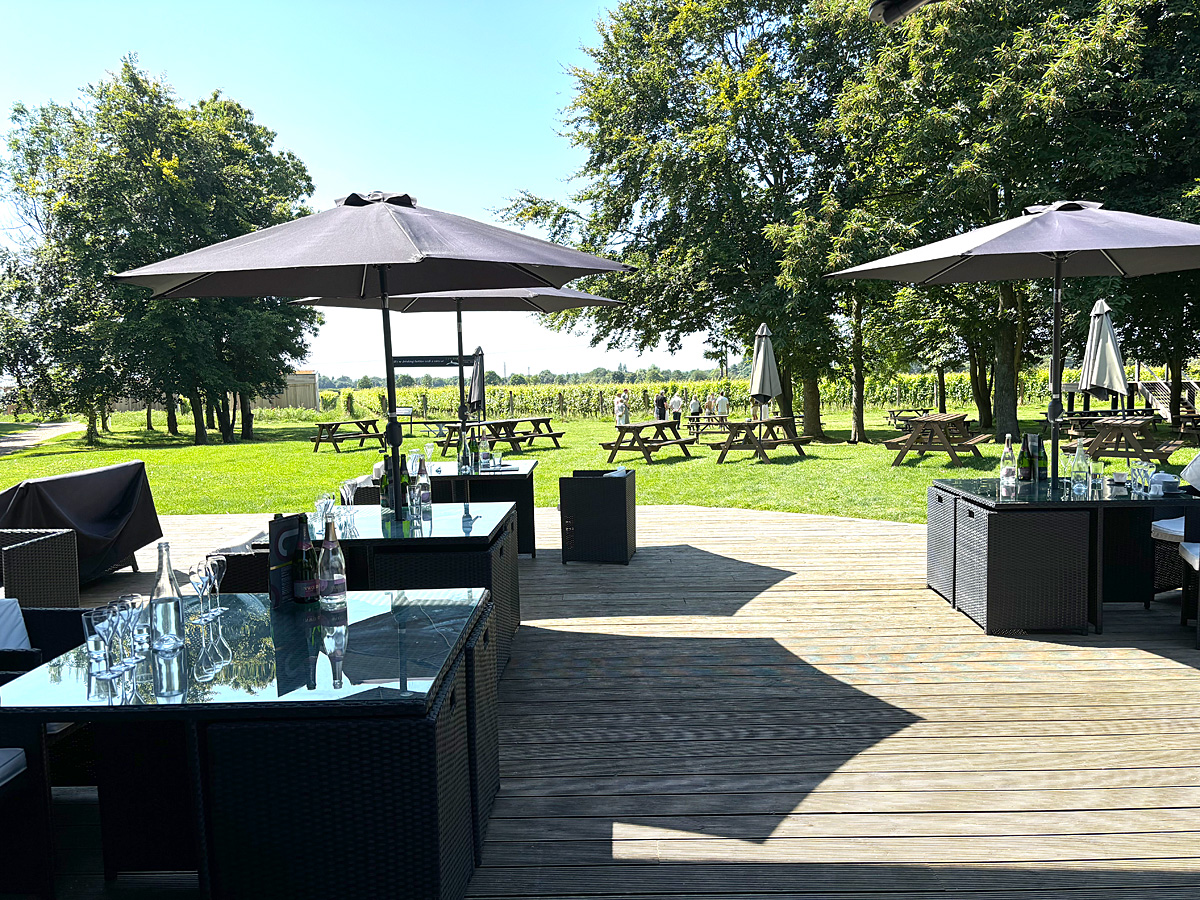 Anyway, as the weather is lovely we went out for lunch to a vinyard called Tinwood Vineyard, which is about 15 minutes from us. We've been here twice before, their system is you put small dishes, bread etc that you want in a wine box, they are sort of picnic kind of food. You cannot have a glass of wine any more, you have to buy a bottle but you can take the left-over home.