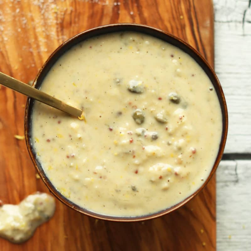 "This recipe is in my permanent rotation – it's SO good. I max the lemon juice and go a little easier on the garlic compared to what's in the recipe, especially when I have big, fresh cloves. The caper brine makes a big difference and truly makes it 'Caesar-y.' I find I don't need the maple syrup. I've used this as a salad dressing, pasta sauce, and have tossed roasted mini potatoes in it. I can't imagine buying Caesar dressing ever again after this, vegan or not." LEAH